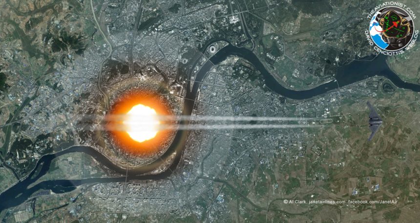 It shows, in quite a realistic way, an extremely unlikely nuclear attack on Pyongyang, North Korea, by a U.S. Air Force B-2 Spirit.