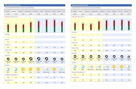 Wonsan area (Wonsan, Kyttaeryong and Okp’yลng-dong missile base) and Kimchaek area (Musudan-ri, Komdok-san, Sanganam-ri and Kilchu missile bases) weather conditions look good for both a (likely) daytime launch and a (less likely) night test launch.