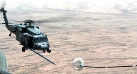 The following video depicts two HH-60G Pave Hawk helicopters refueling from an HC-130J Combat King II during Ex. Angel Thunder 2013.