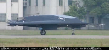 Few hours before the U.S. Navy launched the the Northrop Grumman X-47B unmanned combat air vehicle (UCAV) demonstrator off the deck of an aircraft carrier for the first time, a new clear side image of Lijian (โsharp swordโ), Chinaโs first weaponized stealth drone has emerged from the Chinese Internet.