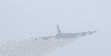 Here’s another one, showing a mass launch of B-52 departing in the thick fog for a training mission.