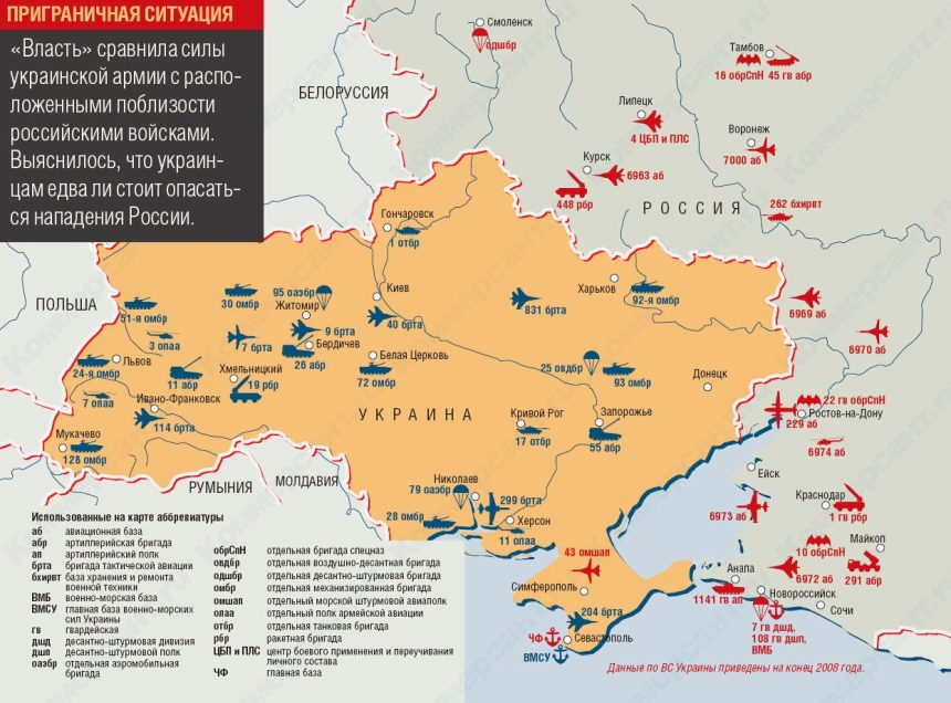 โThere are two mechanized infantry brigades, a tank brigade, and an artillery brigade in the east, though, as well as ย airborne brigade and a tactical aviation brigade. Compare this to western Ukraine, where there are five mechanized infantry brigades, two artillery brigades, a tank brigade, a rocket brigade, four tactical aviation brigades, two army aviation regiments, and an air mobile brigade. Also worth highlighting the forces located in the south, near the Crimea: one mechanized infantry brigade, a tactical aviation brigade, an air mobile brigade and an army aviation regiment,โ says Gorenburg.