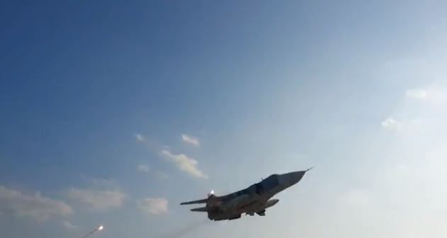 Unlike previous episodes, were only a single Su-24 was filmed, the brand new footage shows two aircraft perform the low pass, releasing also flares to make it a bit more pyrotechnic.