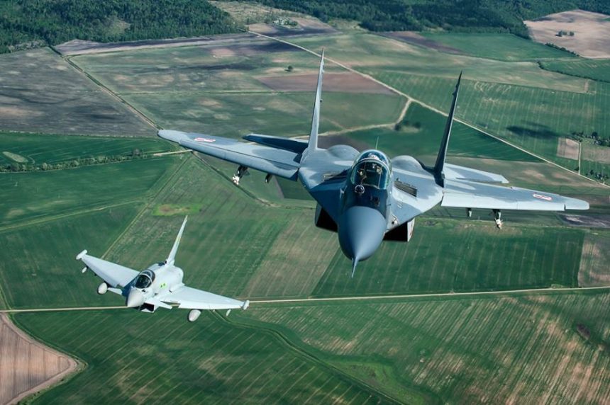 Polish Fulcrums and British Eurofighter Typhoons provide Baltic Air Policing from Lithuania.