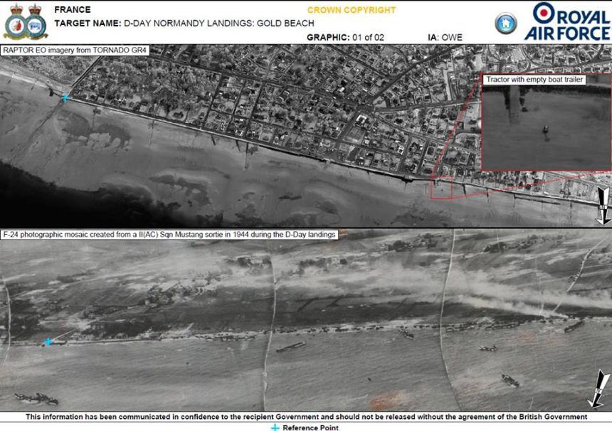 RAF reconnaissance planes have taken shots of the D-Day beaches after 70 years. With todayโs stand-off technology and higher resolutions.