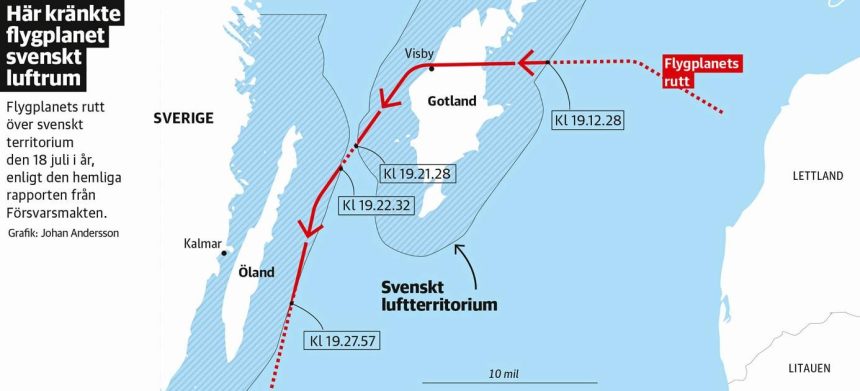 Violations of Swedish airspace are quite frequent (and, sometimes they do not face a response by the Swedish Air Forceโs Gripen jets): seven violations were recorded in 2014, and a total of 53 aircraft have flown without permission inside Stockholmโs airspace since 2009, DN reported.
