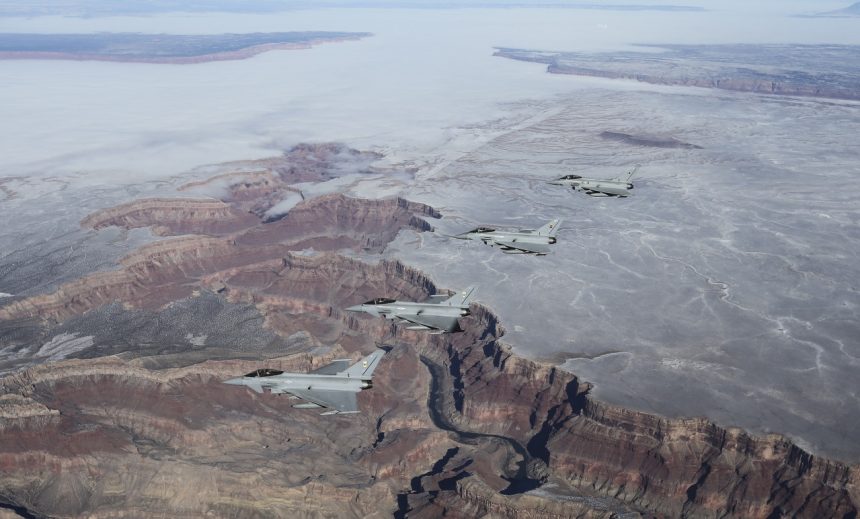 Last week, the lead formation of RAF Voyager and four Typhoon FGR4 multi-role aircraft deployed to Nellis AFB, near Las Vegas, where they will attend exercise Red Flag.