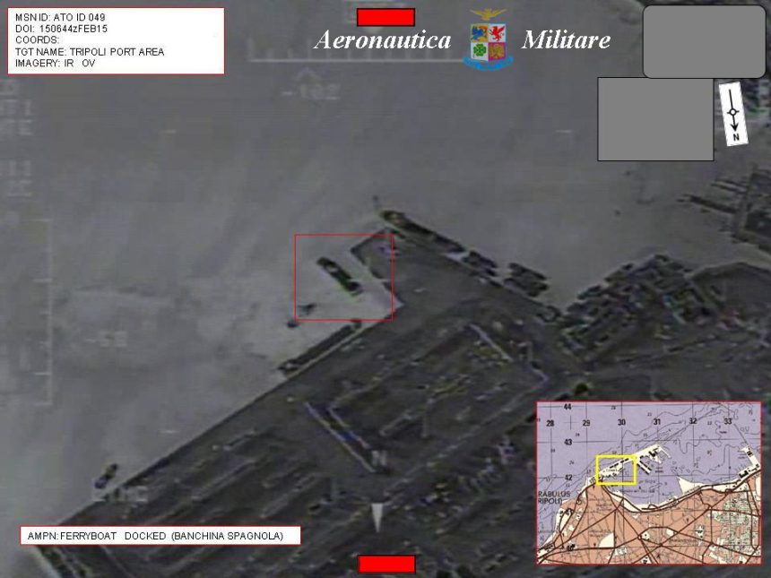 Belonging to the 28th Gruppo (Squadron) of the 32ยฐ Stormo (Wing) based at Amendola, in southeastern Italy, the MQ-1C Predator A+ acted as โOn Scene Eyeโ and filmed the entire operation, monitoring any suspect activity in the vicinity of the ships and near the convoy which brought the Italians to the Tripoli harbor.