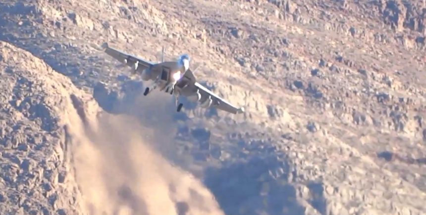 Hereโs an interesting one, filmed by Dave Stein, showing a VAQ-138 EA-18G Growler on base turn for final: take a look at the heat distortion and wingtip vortices highlighted by the desert mountains in the background.