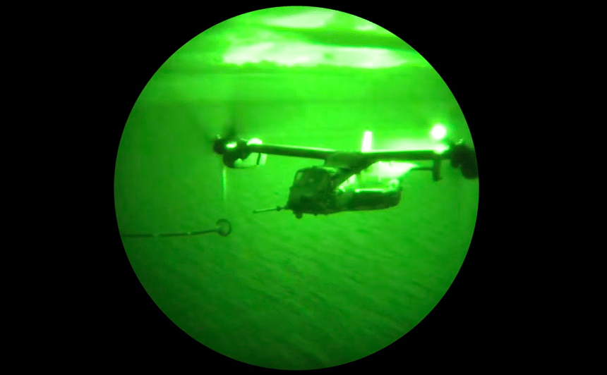 Watchย this CV-22 Osprey taking fuel from MC-130J Commando II at night.