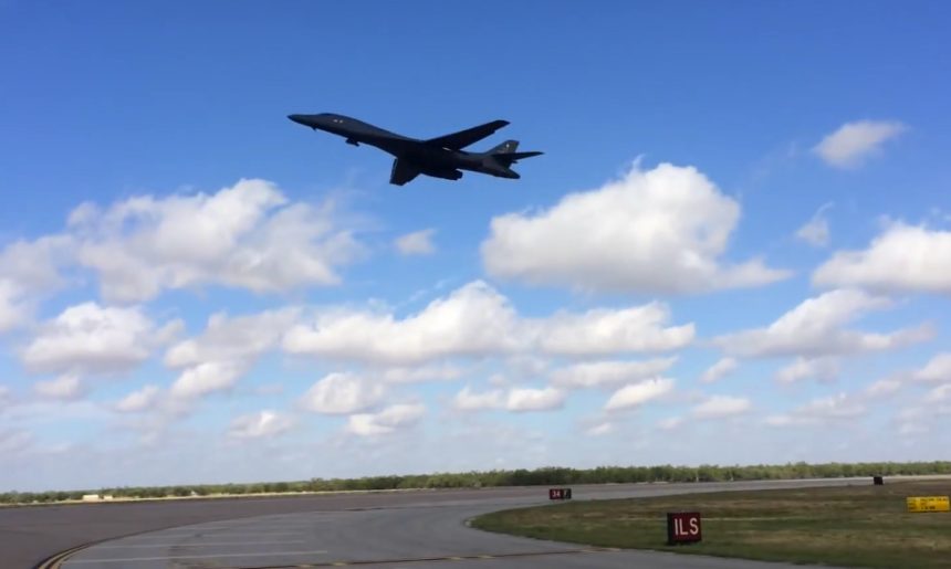 The following video appears to show the final part of the maneuver, with the B-1 Lancer (or โBoneโ) already airborne eventually becoming number 1 of the formation departed from Dyess Air Force Base, Texas (as opposed to the airborne pickup where the airborne aircraft completes the maneuver as chase plane, trailing the aircraft just taken off).