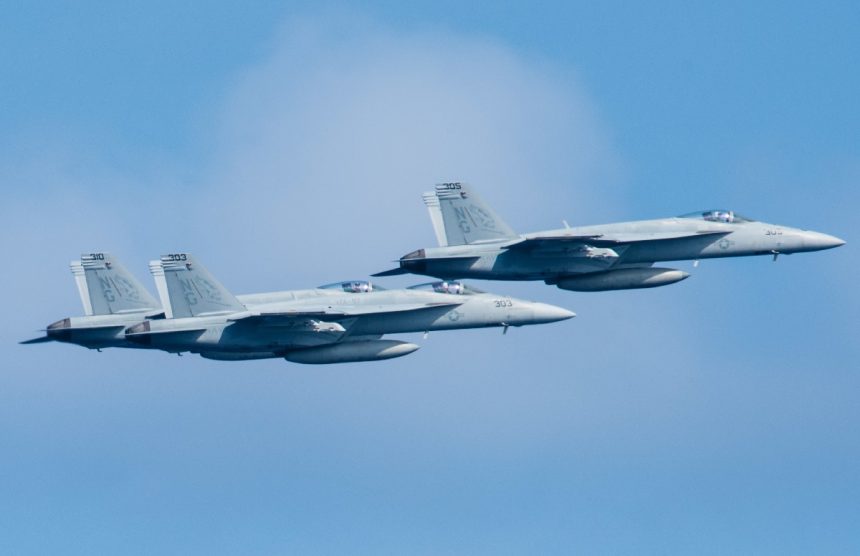On Mar 7, revitalizing a time-honored naval tradition, three F/A-18E Super Hornets assigned to the Warhawks of Strike Fighter Squadron (VFA) 97 executed an airborne change of command overhead USS John C. Stennis (CVN 74) as Cmdr. Doug Peterson was relieved by Cmdr. Matt Doyle as commanding officer.