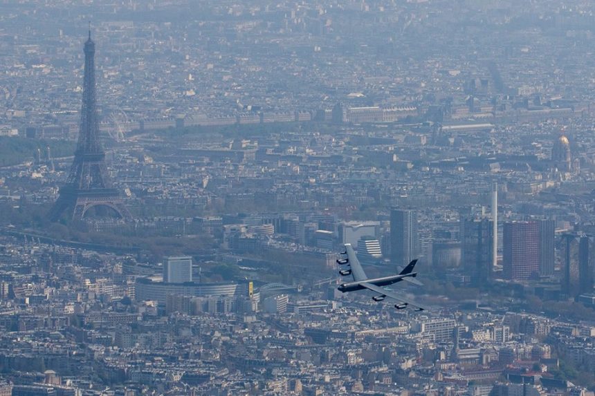 As already explained, on Apr. 20, one B-52, four F-22 Raptor fighters (from their deployment base at RAF Lakenheath), three FAF Mirage 2000Ns and one FAF Rafale performed flyovers during the ceremony commemorating the 100th anniversary of the Lafayette Escadrilleโs formation.