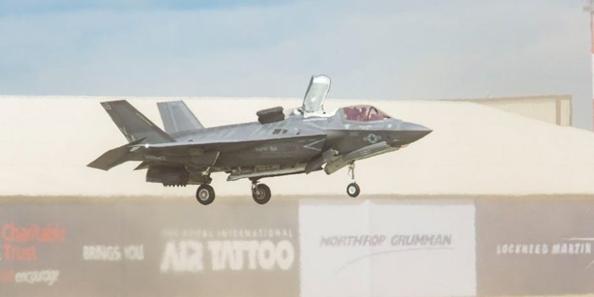 The participation of the controversial 5th Gen. stealth aircraft to an airshow in the UK was planned to take place in 2014 but it was cancelled shortly before the four USMC F-35Bs started their transatlantic trip after a runway fire incident involving an F-35A at Eglin Air Force Base, on Jun. 23, 2014, caused a temporary fleet-wide grounding.