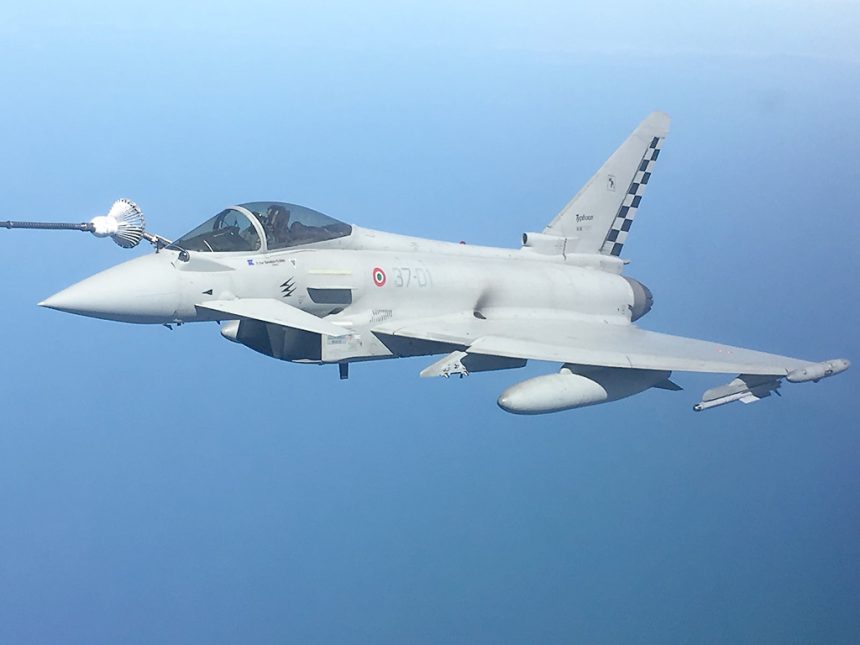 The F-2000As (as the aircraft are designated in accordance with the Italian Mission Design Series) were supported along the 1,800-nautical mile journey to Gando by a KC-767A tanker with the 14ยฐ Stormo from Pratica di Mare that refueled the Typhoons during the 4.5 hours of flight: it was the first time ItAF tactical jets deployed so far from home without accompanying technical support.