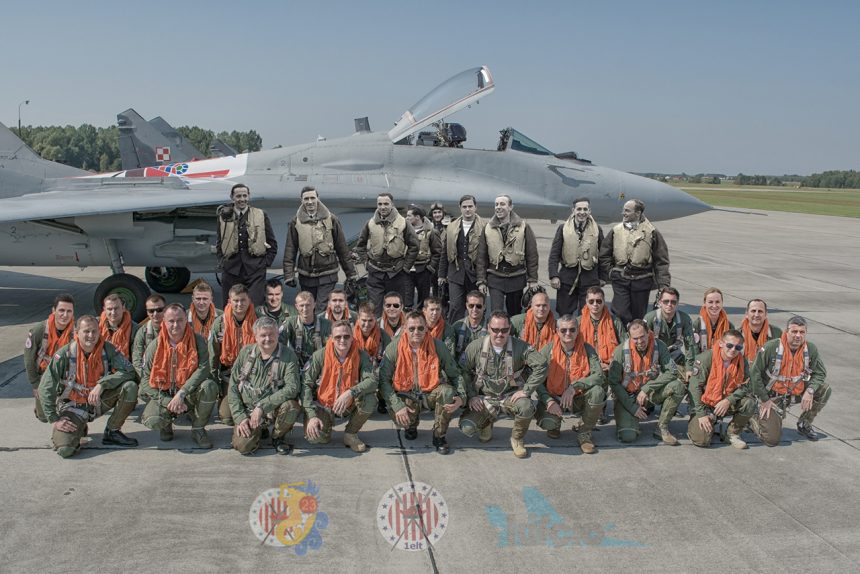 Kifert, known for his work related to the MiG-29 Fulcrum, decided to create a photo showing the pilots of the current squadron based at Minsk Mazowiecki, and establish a connection between them and the RAF Squadron 303, by photoshopping the actual photo of the famous squadron between the group of the pilots which is flying in the unit now, and the MiG-29 fighter visible in the background.