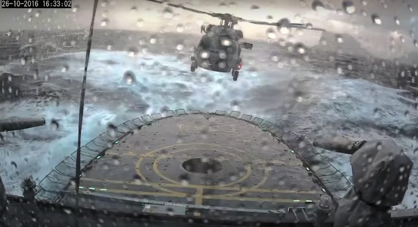 Watch this intense video of a new Danish MH-60R Seahawk landing on the small pitching and rolling helicopter deck of a patrol vessel.