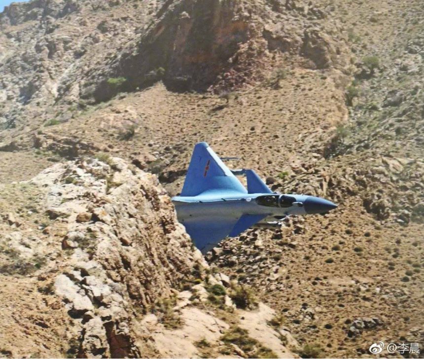 You can also see a J-10C flying through the canyon.