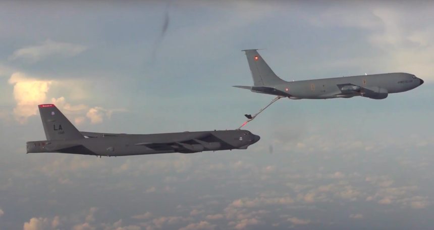 This is something you don’t see too often: a U.S. Stratofortress bomber refueled by a foreign tanker.