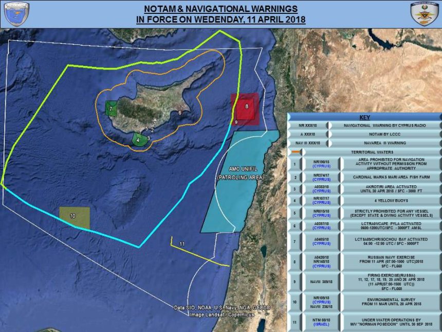 Top image: NOTAM & navigation warnings in force around Cyprus for Wed 11th April (via @CivMilAir)