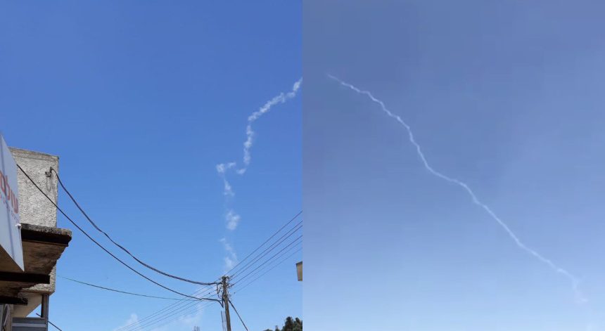 Footage has appeared on social media showing the smoke trail left by the missile fired by the Israeli battery.