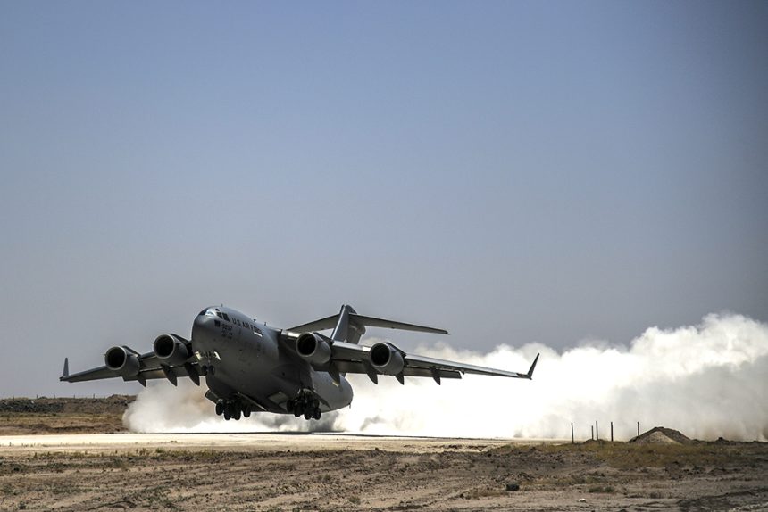 CENTCOM has just published some interesting photographs of U.S. assets supporting Combined Joint Task Force – Operation Inherent Resolve. In particular, the images depict U.S. Air Force C-17 Globemaster III and U.S. Marine Corps KC-130J operating from an austere runway at what the official captions refer to as an “undisclosed location”.