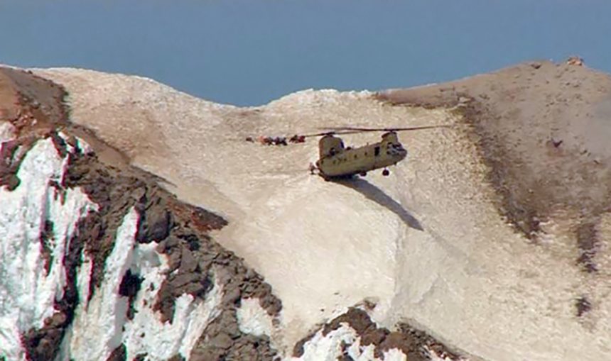 Top image: an Oregon Army National Guard CH-47 Chinook rescues a climber and recovers rescue team from Mt. Hood, Oregon on Friday, July 13, 2018. (Photo: CBS/via Associated Press)