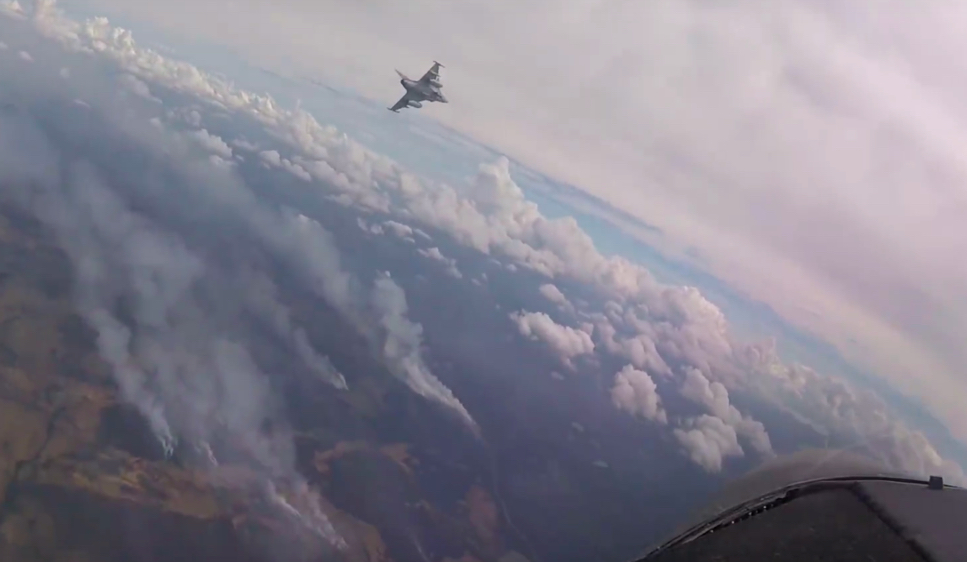 Here’s the footage filmed from another Gripen chasing the launch platform.