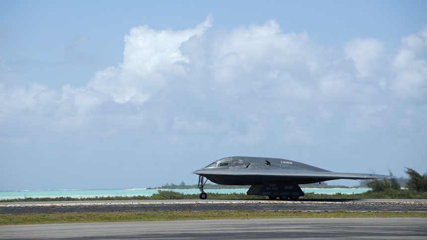 During the mission, one of the the B-2s flew to Wake Island, a coral limestone atoll in the mid-pacific, east of Guam, where it conducted hot-pit refueling, a technique in which the aircraft land and refuel, without shutting down the engines.