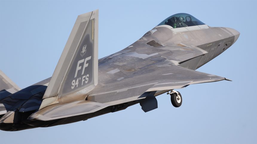 U.S. Air Force F-22 Raptors assigned to the 1st Fighter Wing out of Langley Air Force Base, Virginia along with U.S. Navy F/A-18 Super Hornets assigned to Carrier Air Wing One and deployed from the Nimitz-class aircraft carrier USS Harry S. Truman, temporarily deployed to Suffolk to conduct large-force Dissimilar Air Combat Training (DACT) exercises with the local-based F-15E Strike Eagles and F-15C Eagles.