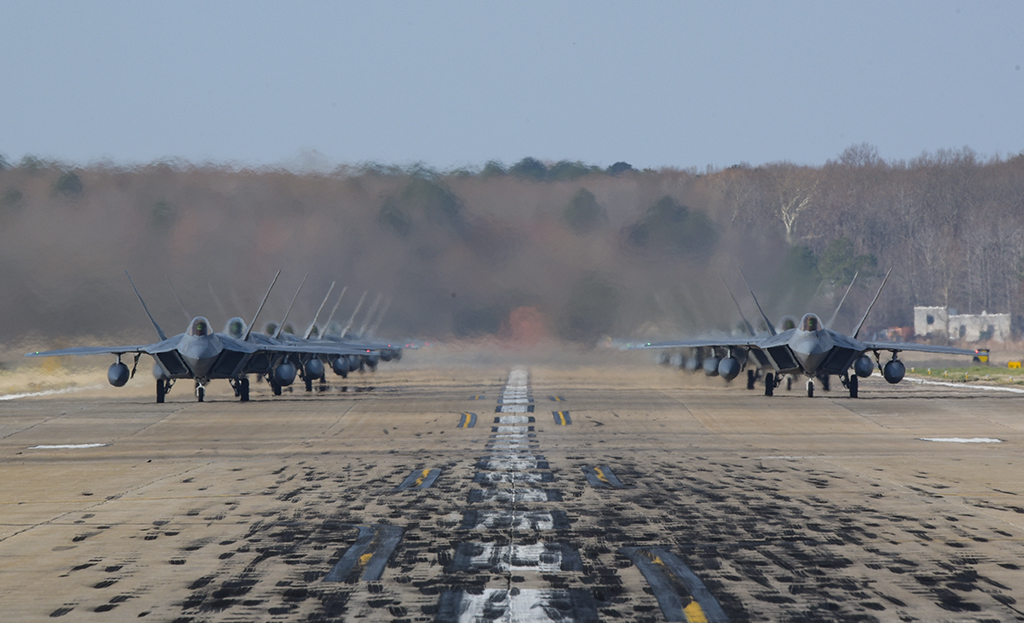 Both wings partnered with 633rd Air Base Wing during the Phase 1 exercise to showcase their readiness and deployability of the F-22 5th generation stealth jets. Interestingly, as part of the JBLE Total Force exercise, the Raptors also staged an “Elephant Walk”.