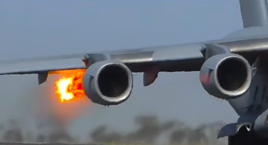The stunning video below was filmed during Avalon Airshow, Avalon, Australia, and shows a USAF Boeing C-17 Globemaster III experiencing a birdstrike. The airlifter was on its take off roll for its aerial display when an big bird was ingested by the engine. According toย HD Melbourne Aviation who filmed the incident, Avalon Airport is notorious for having hawks gliding and hanging around the runways. Indeed, one of them can be seen got sucked into the engine with a consequent fireball and loud bang, the typical behaviour of a compressor stall.