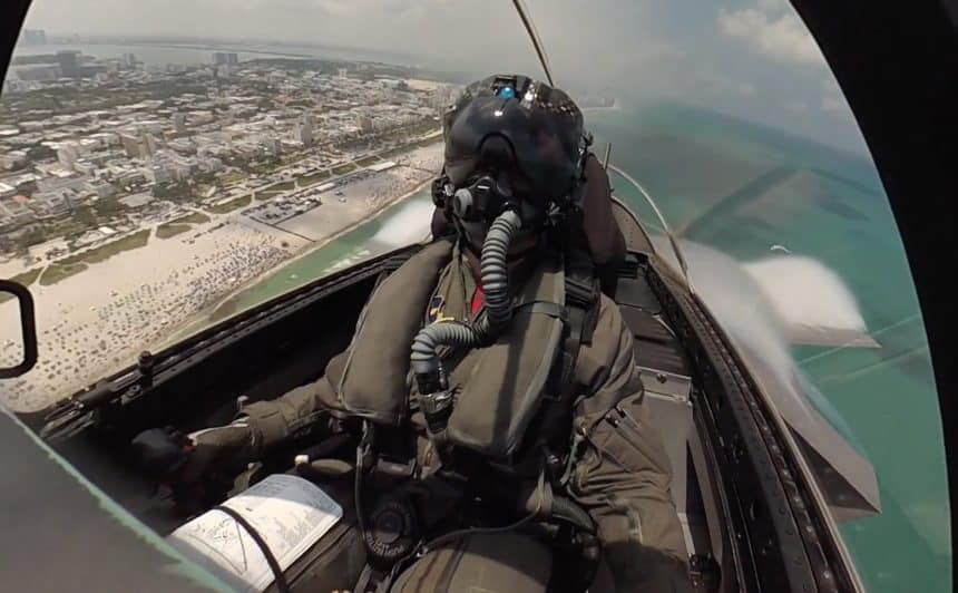 After teasing it with some short clips published in the last few weeks, the F-35 Demo Team has eventually released a full cockpit video filmed with 360 degree technology as Air Force pilot Capt. Andrew โDojoโ Olson, commander of the Team and display pilot, performed over Miami Beach, Florida, during the Miami Beach Air and Sea Show last weekend.