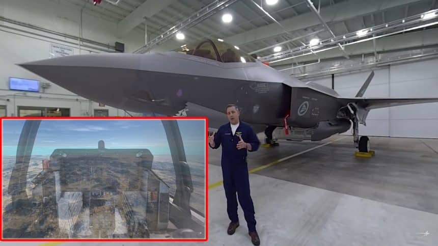 Using Augmented Reality, the footage shows how an F-35 pilot can see through the aircraft, along with many other interesting things.