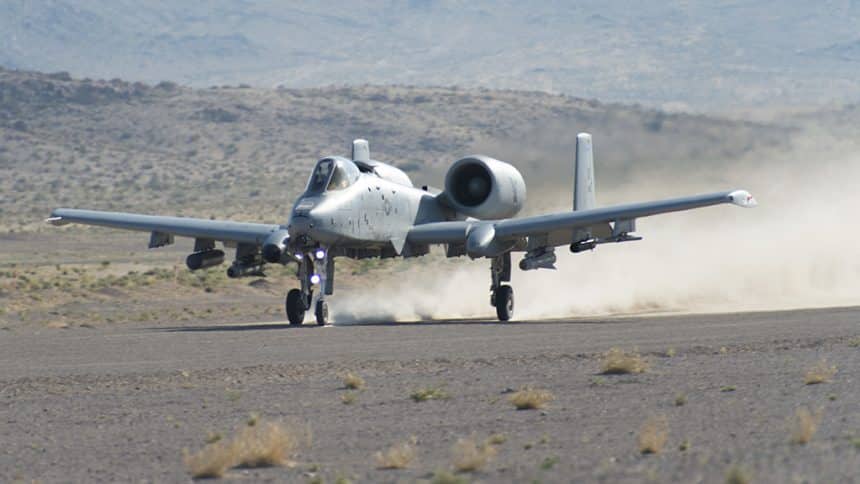 Thanks to its engines mounted far from the surface of the runway, the A-10 attack aircraft is practically immune to FOD (Foreign Object Damage) caused by debris flying up from unprepared runways. For this reason, the Warthog (one of the most popular A-10 nicknames) often practice austere landing and take off operations, both in the U.S. and when they are deployed to eastern Europe, a theater that is also scattered with highway strips as well as abandoned Warsaw Pact military airfields, which have not been in use since the Cold War, that are perfectly suited for such kind of training.
