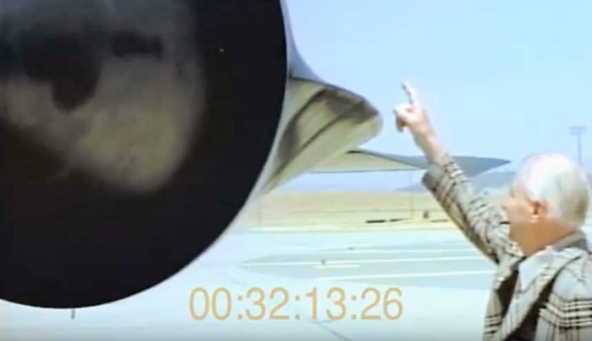 You can see Johnson doing a walkaround of the SR-71, the powerful P&W J-58 turbo ramjets “that work as an ordinary turbojet up until about 1600 mph, then at that speed, it shift its actual cycle and becomes a ramjet”, the wing that “is a basic delta plan form with a conical camber which is a twist that gives us better crosswind landing characteristics and less drag when we go supersonic”. Noteworthy is also the way Johnson talks about the chines, shaped so as to reduce the radar return of the aircraft that, as explained in a recent story, can somehow be considered the first stealth aircraft ante litteram. Then, Johnson explains the aircraft’s peculiar movable conical spike used to change the inletโs geometry. As we explained in detail in a previous article, the spike was used to control the supersonic air flow and position the shockwaves generated by the air slowing down into the throat of the inlet to obtain the best performance, while preventing the supersonic flow to reach the compressor. The spike was in a full forward position during subsonic flight; above 30,000 feet and Mach 1.6 the spike started moving after into the throat to keep the shockwaves in the same optimum position. The spike moved approximatively one and 5/8 inches per 0.1 Mach, for a total maximum travel of 26 inches after into the inlet in the full retracted position.