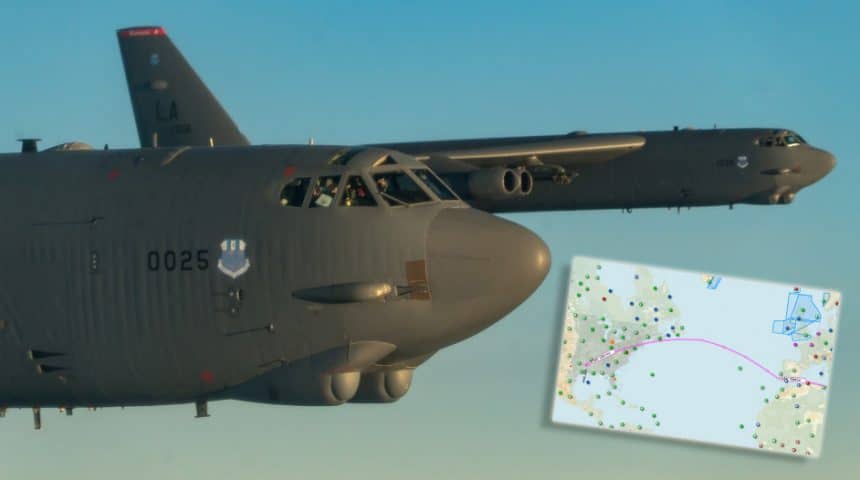 The strategic bombers and their support tankers could be tracked online as they moved from Barksdale Air Force Base to the American outpost in the Indian Ocean as part of the U.S. build up in the region.