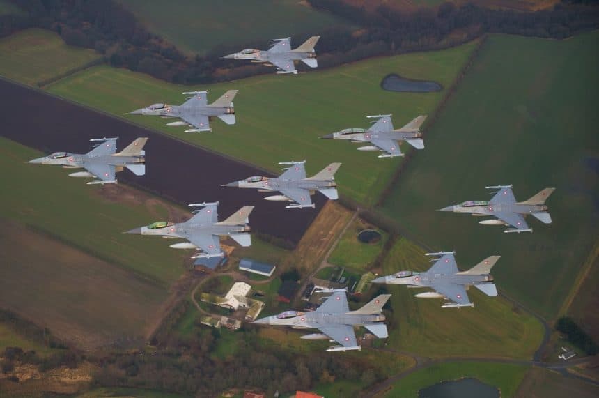 De danske F-16 kampfly runder 40 รฅr โ det fejrer @forsvaretdk i dag med en stรธrre 10-skibs formationsflyvning over Danmark. Lรฆs mere: https://t.co/p0ft1HNp18 #vรฆrdatkรฆmpefor #dkforsvar pic.twitter.com/qb0VUXJtFu