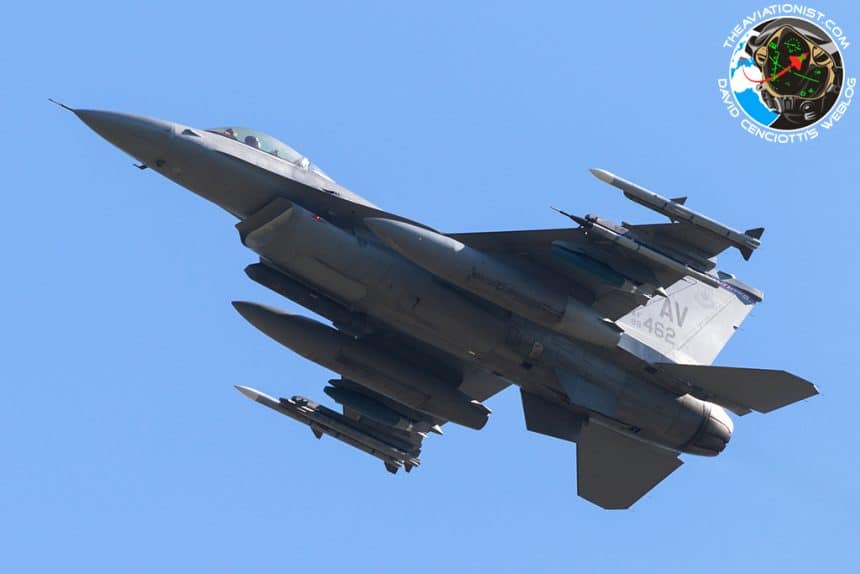 For their mission, the Aviano Vipers carried two AIM-120 AMRAAM, one AIM-9X Sidewinder, an AN/ASQ-T50(V)1 AIS pod, a SNIPER ATP (Advanced Targeting Pod) along with the BDU-50 and two fuel tanks.