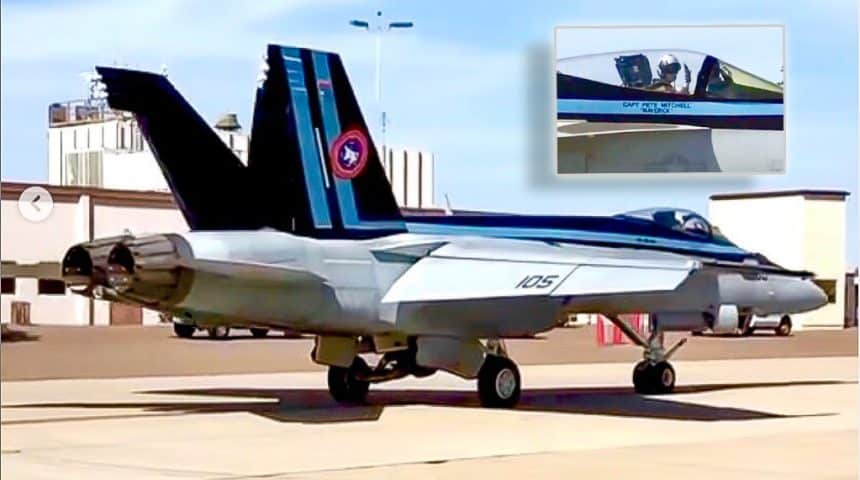 Ace โTop Gunโ expert skidvoodoo on Instagram got the photos and video of the specially painted, single seat F/A-18E Super Hornet from another contributor and posted them on his excellent Instagram (follow @skidvoodoo on Instagram for lots of great โTop Gunโ content). The aircraft is one of two specially painted F/A-18 Super Hornets used in the filming of the upcoming sequel to the original 1986 โTop Gunโ, โTop Gun: Maverickโ to be released on June 26, 2020.