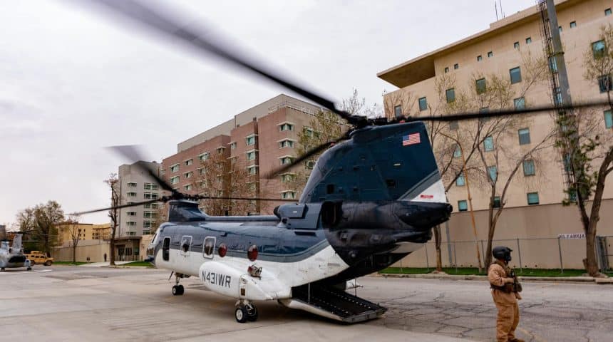 [Embassy Air] operates like a real airline with scheduled departures and arrivals that run five to six days a week, carrying as many as 150 people to and from the Embassy and other locations in the country every day. In the 2017 Fiscal Year, the CH-46 helicopters, which private military companyย DynCorpย operates and maintains, flew a total of 32,000 scheduled flights, as well as 3,500 โspecial missions,โ which would include activities such as moving the Secretary of State around during his visits, according to an official Department of Stateโs Office of the Inspector General review. You can read more about Embassy Air Program in Afghanistan, as well as in Iraq,ย here.