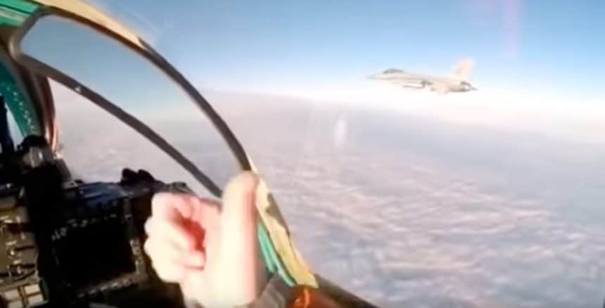 The video below was filmed from the cockpit of a MiG-31 escorting a Russian Tu-95MS as what appears to be a Royal Norwegian Air Force F-16 approaches the package: the Russian pilot waves and gives the NATO pilot a thumbs up sign.