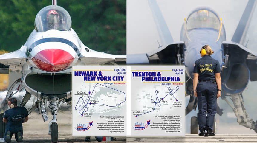 The U.S. Navy Blue Angels and the U.S. Air Force Thunderbirds have announced their schedule of flyovers in recognition of health care, first responder, law enforcement and all front-line personnel during the COVID-19 crisis for Tuesday, April 28, 2020. It is the first of a series of upcoming dedication flyovers to take place around the U.S. with additional cities and schedules to be announced.