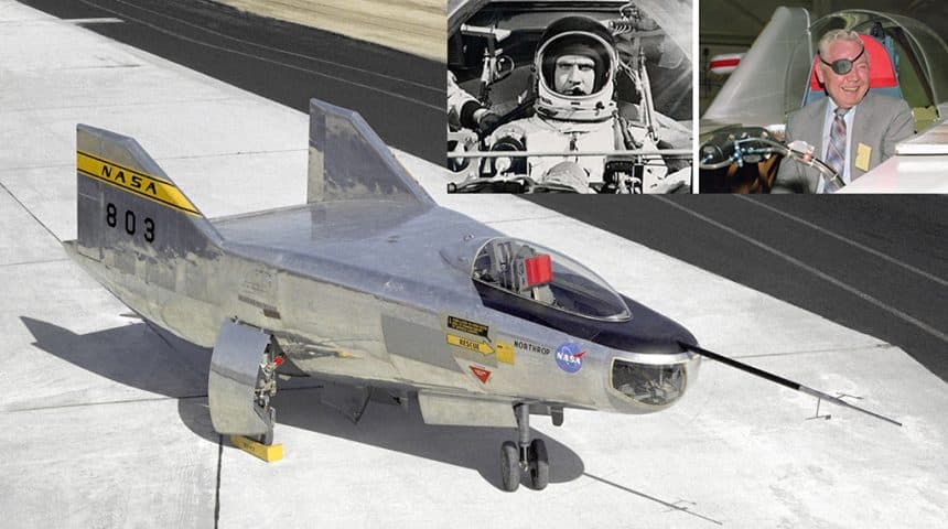 Peterson sustained serious injuries from the crash including the eventual loss of vision in his right eye from a staph infection, but it did not stop him from continuing his successful flight test career. Even without six million dollars’ worth of bionics, Peterson went on to fly nearly 6,000 total flight hours in 70 different aircraft. He was an early flight test engineer on fly-by-wire advanced flight control systems and went on to work for Northrop on the B-2 Spirit stealth bomber program. Bruce Peterson died after a long illness on May 1, 2006 at 72.