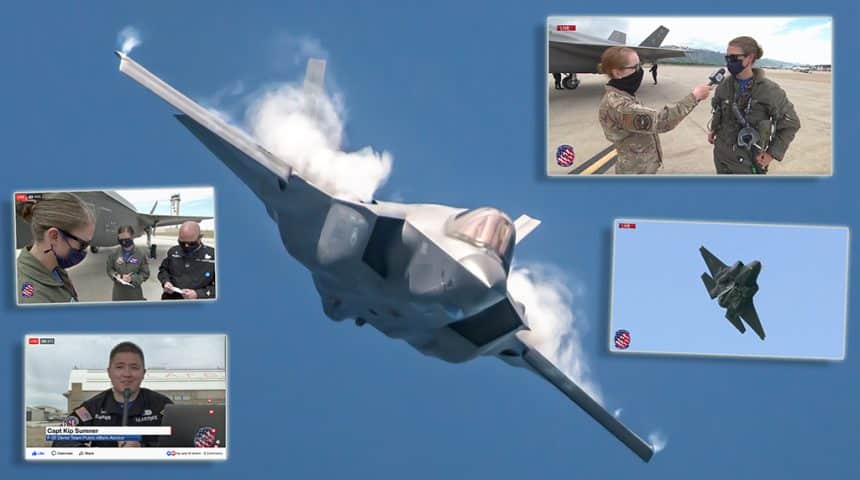 If there was one thing conspicuously absent from the broadcast, it was live, in-cockpit video. The F-35A Demo Team has featured in-cockpit video before, but not during live broadcasts. Live video streamed from the cockpit could present multiple hurtles for the Air Force, especially with F-35A operations where operational security may be a concern in some views of the cockpit during the demo.
