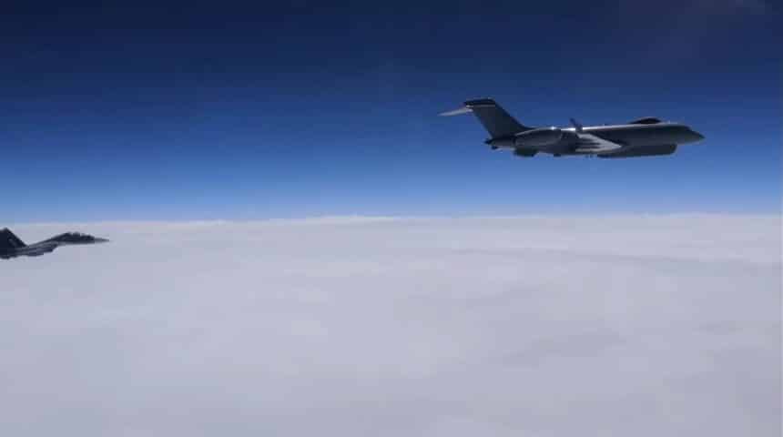 A video emerged showing the Flankers keeping a safe distance from the ISR aircraft
