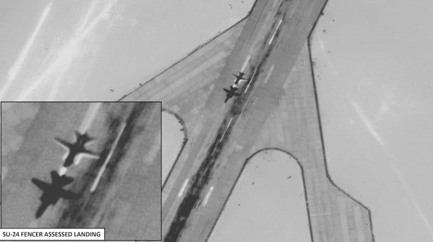 Two images were released by the U.S. Africa Command. The first one, shows a Su-24 landing at an unspecified airbase.