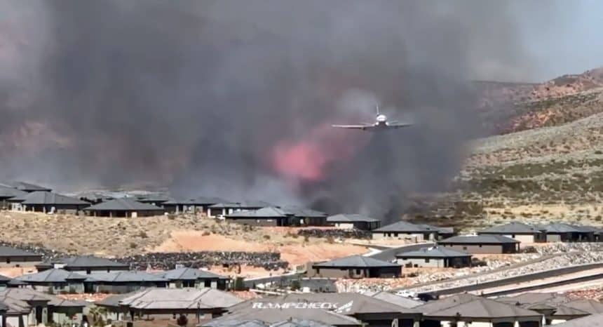 10 Tankerโs Converted DC-10 Hits Wildfire Near St. George, Utah, Through Heavy Smoke.