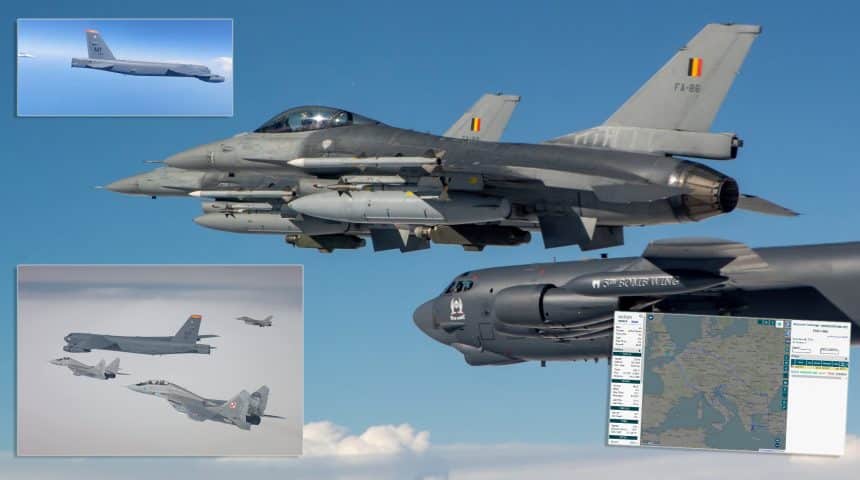 Here are the radio comms of the B-52 over Belgium with F-16 escort: