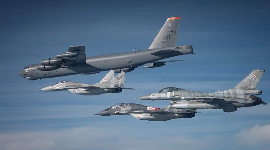 B52 Bomber over Poland heading towards the Belarus border